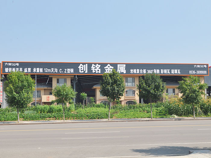 濰坊創(chuàng)銘金屬制品有限公司位于山東臨朐江北物流城,地理位置好。是本地區(qū)一家集鍍鋅板卷材、鍍鋅板開平、縱剪、樓層承重板、12米天溝、C、Z型鋼、彩鋼瓦、巖棉復(fù)合板、剪板折彎等產(chǎn)品及板材批發(fā)、零售、加工、配送的公司。